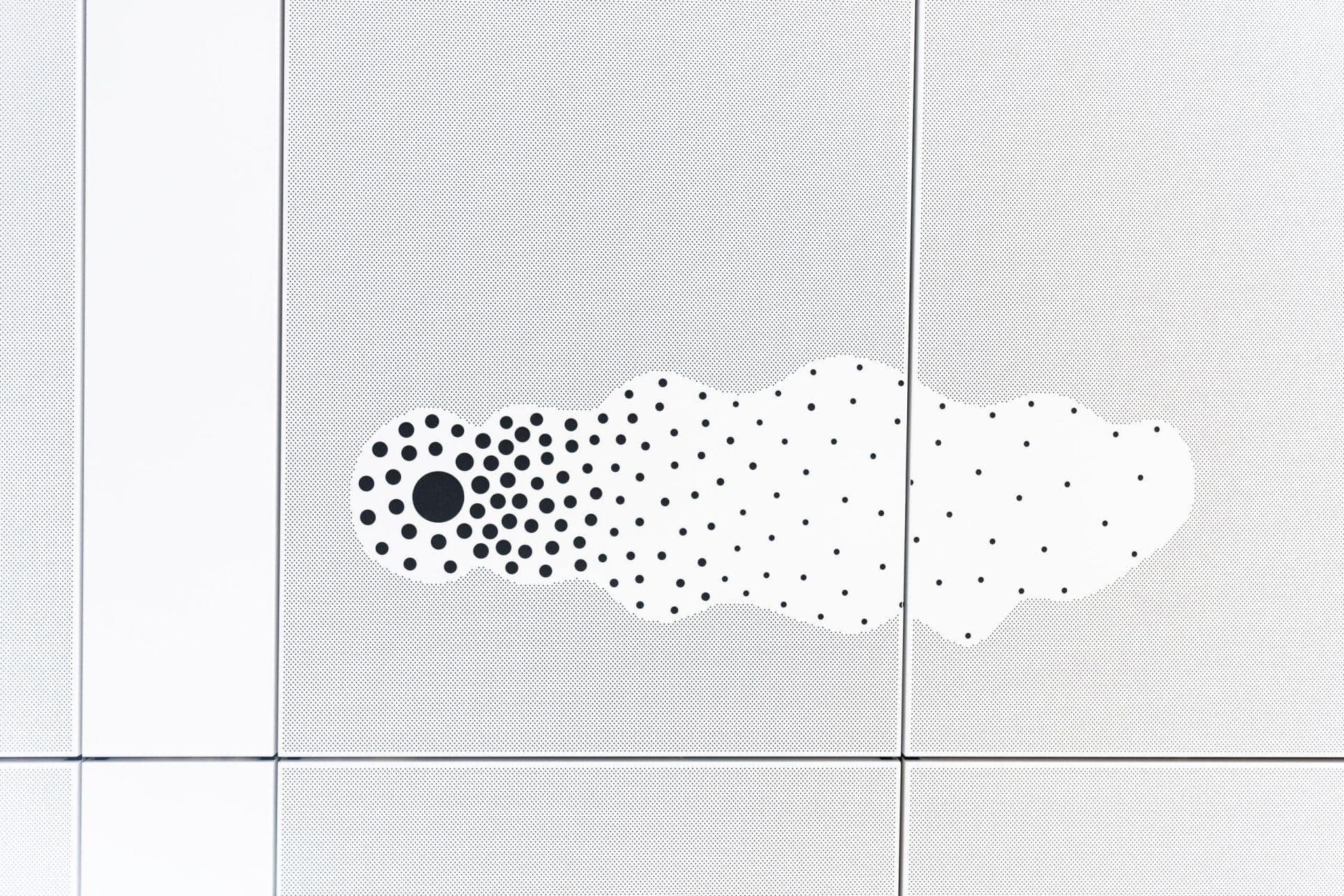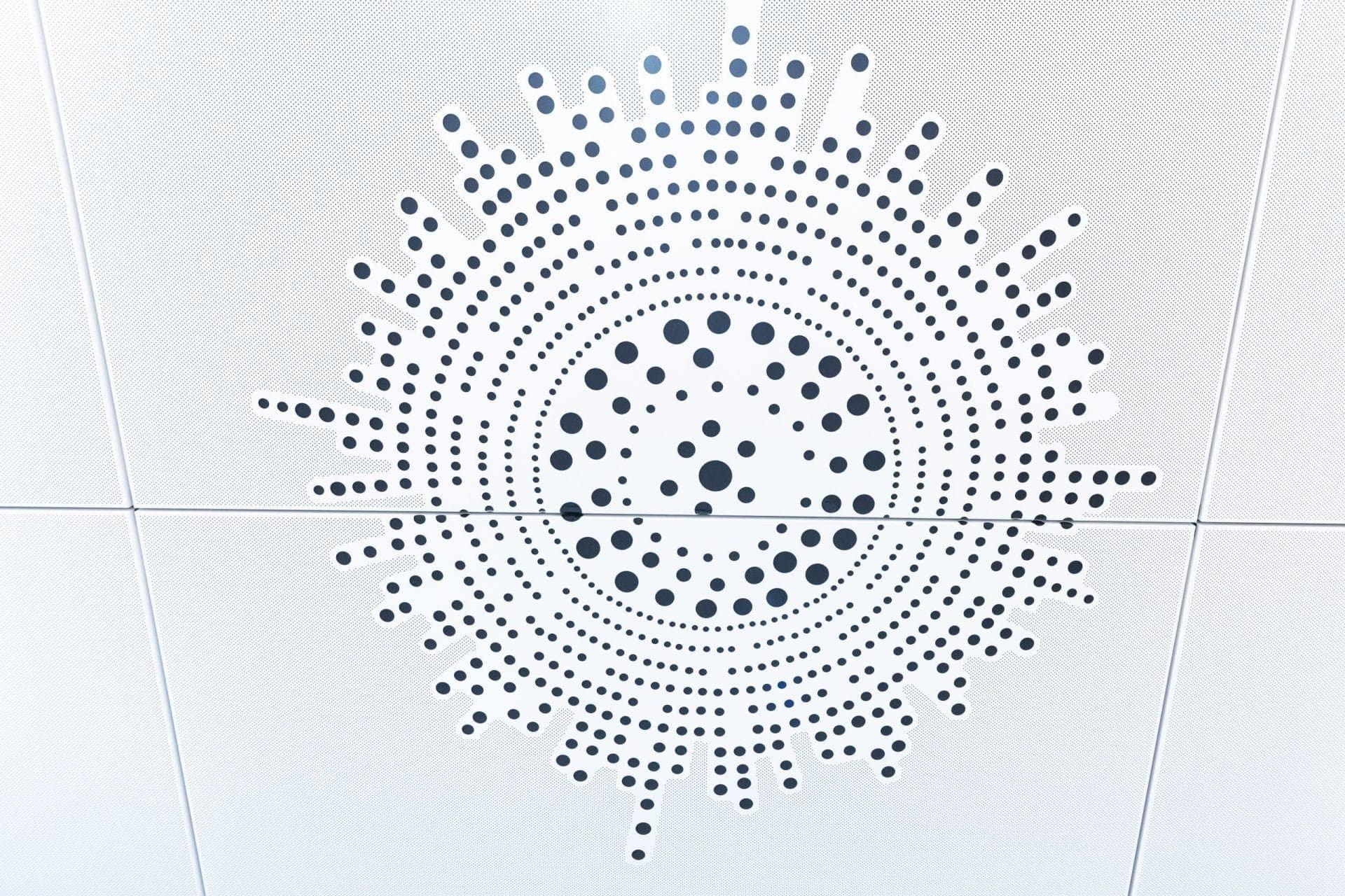 To meet the design brief, Network Architectural supplied a custom perforated durlum S7 ceiling system, finished in White RAL9003 and fabricated in various panel dimensions. Installed using the S7 Double Hook-On system with storm brackets, the ceiling spans over 400m², continuing from the interior of the hall to the external soffit that wraps the perimeter of the building.