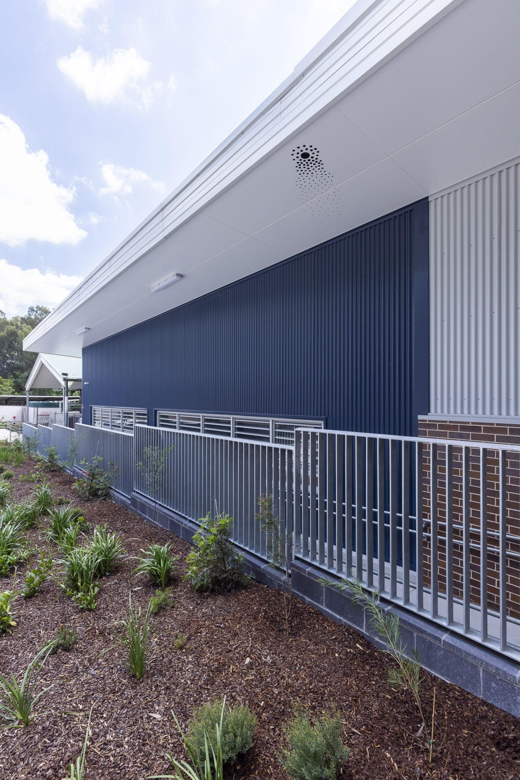 One of the project’s standout features is the integration of custom Indigenous artwork, laser-perforated into the aluminium panels in varying patterns and sizes. This thoughtful design element brings cultural storytelling into the built environment, creating a meaningful connection between students, community, and place.