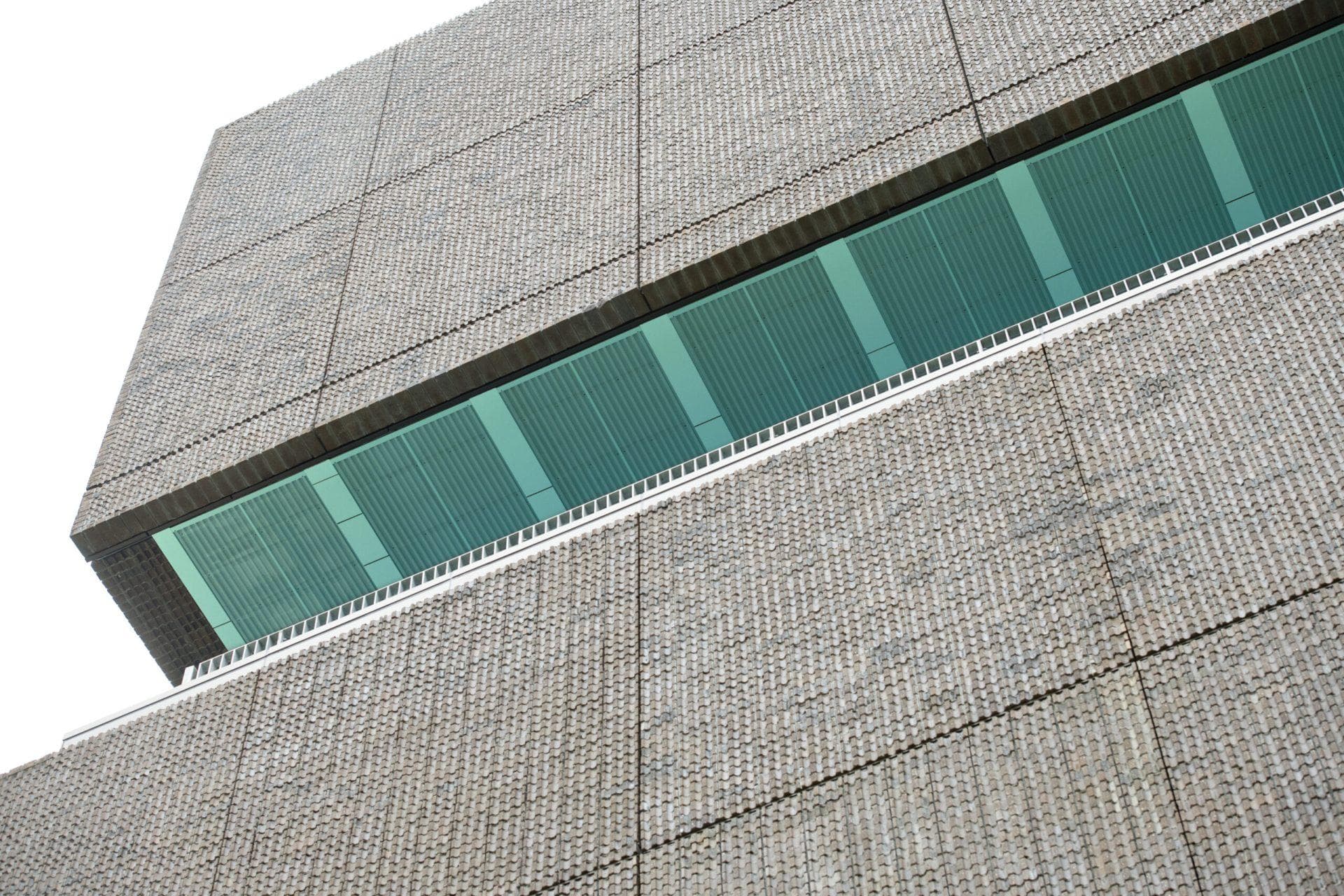 Custom corrugated perforated ceiling and wall panels to match exterior brickwork, Heavy-duty impact resistant mesh, durlums S7 decorative stainless steel panels