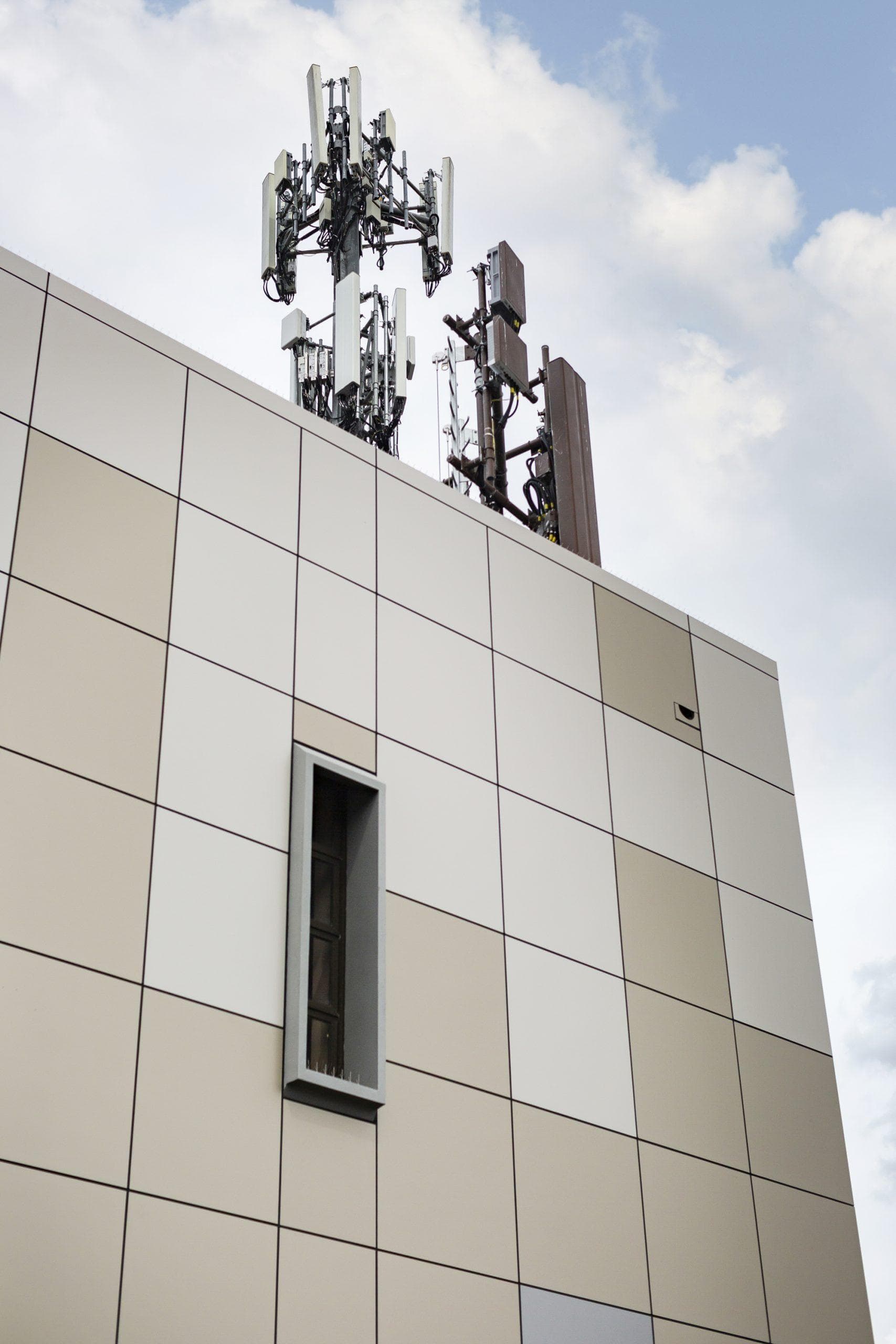 The Telstra Data Exchange building in Penrith received an upgrade to its facade to remove the dated pebblecrete and increase its aesthetic appeal. 1,400m² of ALPOLIC™ NC/A1 DtS compliant non-combustible cladding in Light Bronze Metallic, Pale Copper Metallic, and Dark Grey Metallic finish were used to reclad and modernise the facade.