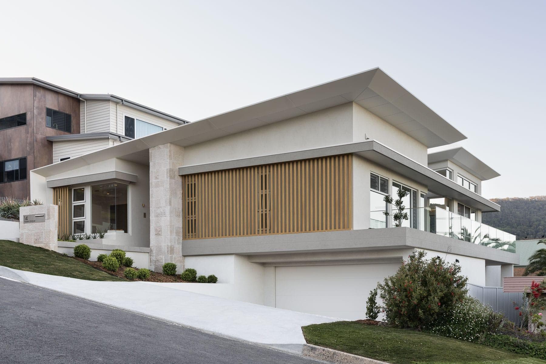 Set on an elevated site in Balgownie, The Horizon is a contemporary residential project defined by clean lines, layered forms and a strong emphasis on light and outlook. Designed by South Coast Building Design, the home presents a crisp architectural profile that responds to its coastal setting through restrained detailing and a refined material palette.
